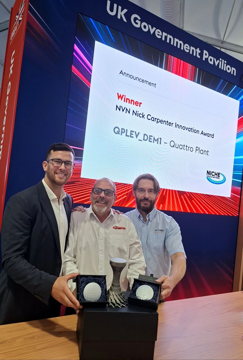 “I’m delighted to receive the Nick Carpenter award for innovation on behalf of our team at Quattro Plant and our consortium partners, iNetic and EV Parts. The funding offered by the Niche Vehicle Network has been invaluable.